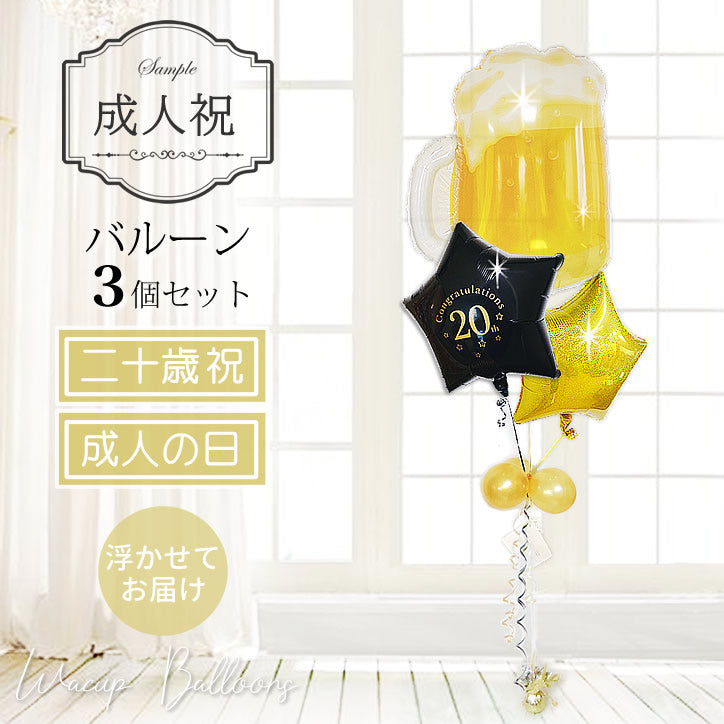 ビールで乾杯! おめでとう♪大人の仲間入りをする男性に、特別な日をさらに華やかに演出するバルーンセット!