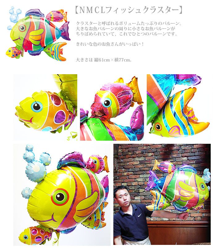 魚 水族館 海の生き物 好き 七五三 卒園 卒業 入園 入学 3歳 5歳 7歳 こどもの日 ギフト プレゼント 浮く - フィッシュクラスター選べる5バルーンセット <補充用ヘリウムガス付>