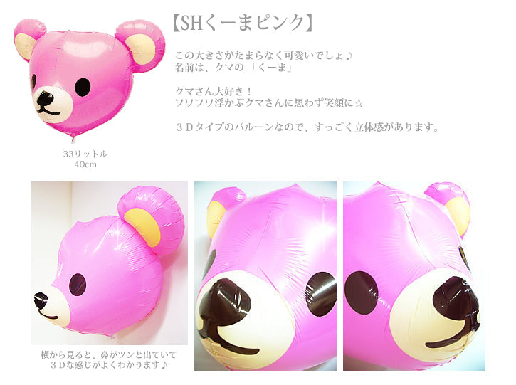 くま クマ 風船 初節句 百日祝い ひなまつり 卒園祝い 入園祝い 入学祝い 人気 動物 お祝い かわいい おしゃれ - くーまピンク3バルーンセット<補充用ヘリウムガス付>
