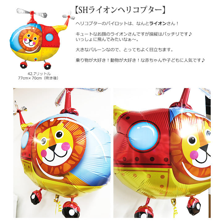ヘリコプターを運転するのはかっこいいライオン! - ライオンヘリコプター スター&パーフェクト6バルーンセット<補充用ヘリウムガス付>