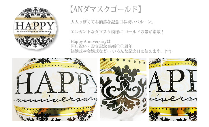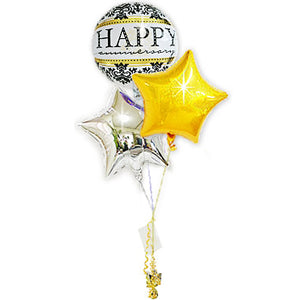 ハッピーアニバーサリー!ケーキと一緒にバルーンでお祝い - 記念日ダマスク ダズル金銀スター3バルーンセット<補充用ヘリウムガス付>
