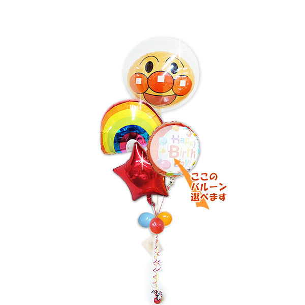 【アンパンマン】アンパンマンキャラクター風船 - ダブルアンパンマン&レインボー4バルーンセット<補充用ヘリウムガス付>