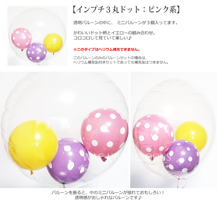 ミニ風船が3個入った透明バルーンがコロコロ揺れてかわいい♪