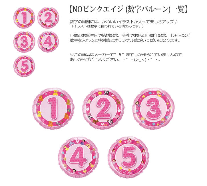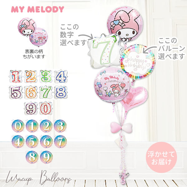 3歳4歳5歳6歳7歳…マイメロ誕生日プレゼント -【数字入】マイメロディいちご&ハート5バルーンセット <補充用ヘリウムガス付>