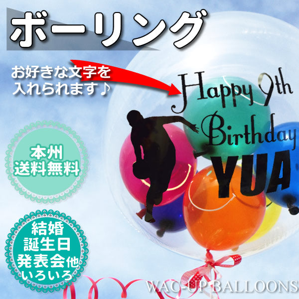 ボウリング大好き!誕生日 開店祝いなどのパーティー サプライズプレゼントにおすすめ |ボウリング【スマイル!スマイル!】透明スポーツ名入れ付きバルーン電報セット