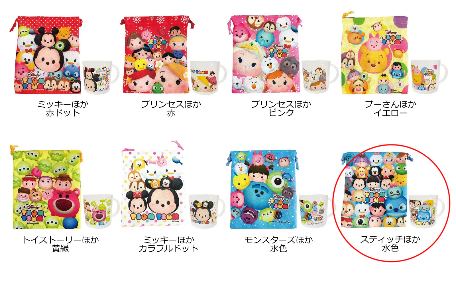 ディズニーツムツム コップ&巾着:スティッチほか水色