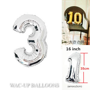 【選択用ミニシェイプバルーン】 16インチ数字シルバー「3」 30cm