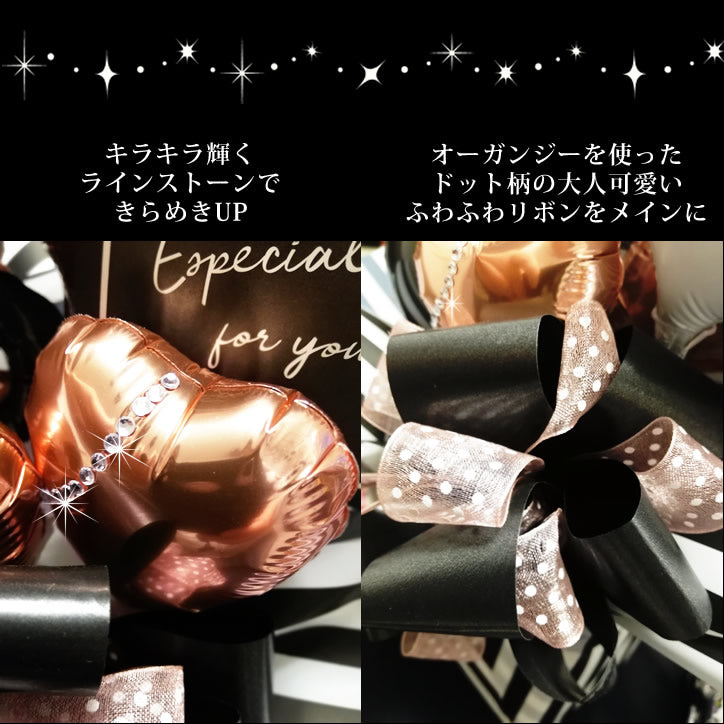 【選択用 卓上型バルーンアレンジメント】オープンハートS/ローズゴールド/ストライプ