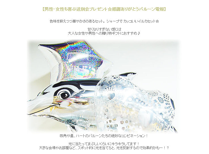 男性や大人な女性におすすめ送別会プレゼント - TKチョークボード【シルバー】ドルフィン5バルーンセット<補充用ヘリウムガス付>