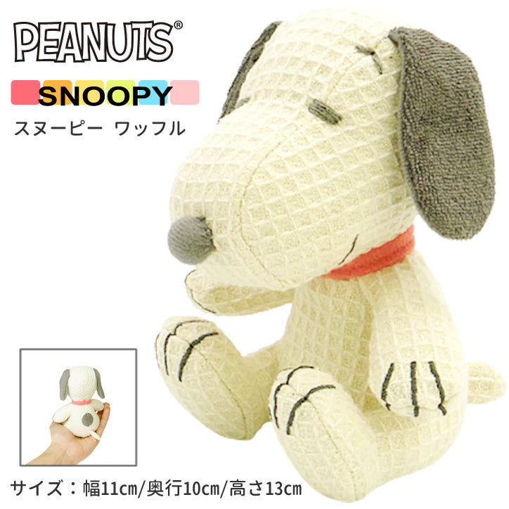 SNOOPYぬいぐるみ。ワッフル素材の優しい手触り&さわると音が出る手のひらサイズのスヌーピーのぬいぐるみ。