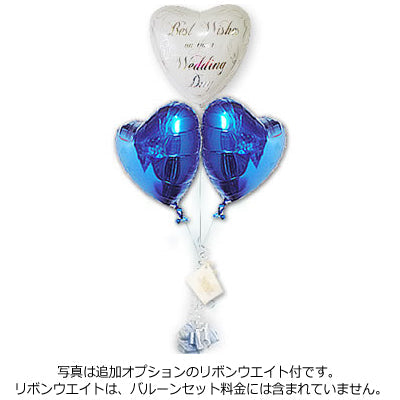 結婚式 電報 クールでかっこいい!青のハートのバルーン - 結婚祝スクリプト&ダブルメタブルー3バルーン電報セット<補充用ヘリウムガス付>