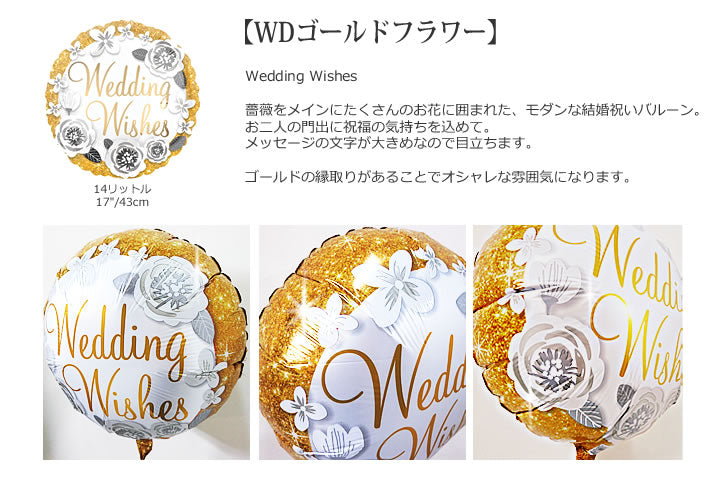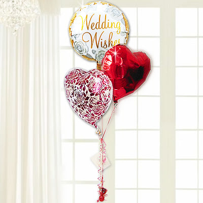 結婚祝いメッセージバルーンは、赤いバラ柄バルーンやハートバルーンとも相性がよく、