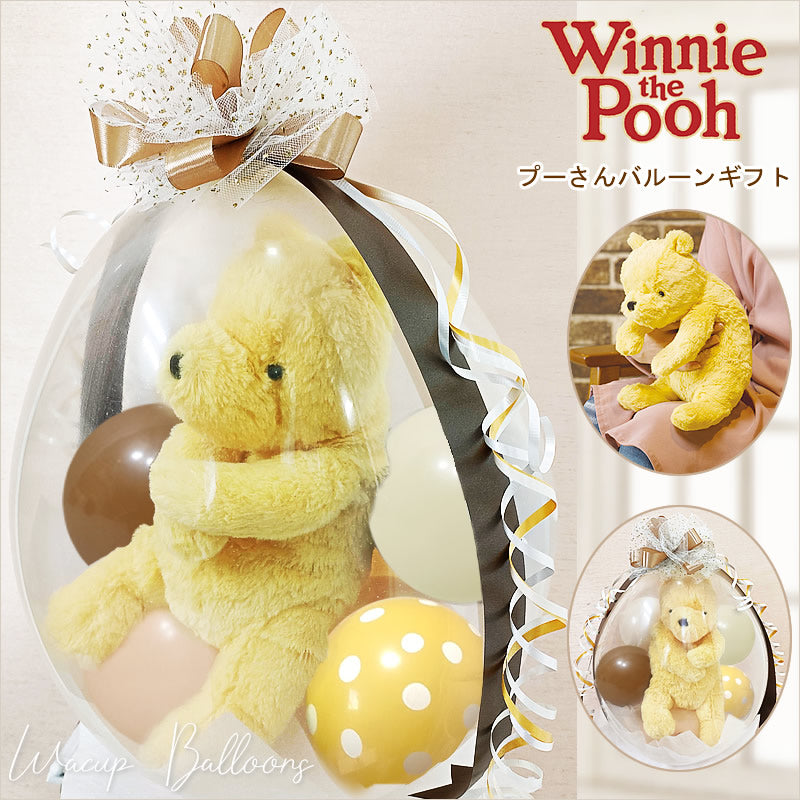 「くまのプーさん」ぬいぐるみをバルーンに入れてラッピング♪