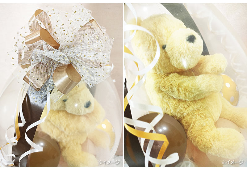 バルーンラッピングの作り上、中のぬいぐるみがあっち向いたりこっち向いたりしやすい性質がありますので、プレゼントとしての品質を保つため、