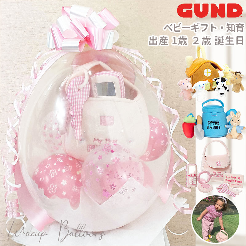 話題の知育ぬいぐるみ ギフト 愛子様 玩具 おもちゃ ままごと 1歳誕生日 2歳 プレゼント 出産祝い 100日 記念日 お祝い ピーターラビット ファーストトイ - ぬいぐるみバルーンラッピングギフト:選べるGUNDプレイセット<桜満開>
