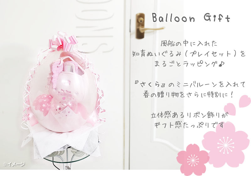 透明バルーンの中には、世界中のママたちに支持されるGUND(ガンド)の知育プレイセットおもちゃをひとつお選びいただけます。さらに、桜柄のミニバルーンが一緒に入っていて、見た目も華やか。