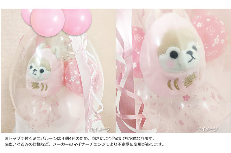 透明バルーンの中には、選べる「福だるま」のぬいぐるみが1体と、桜柄のミニバルーンが入っています。