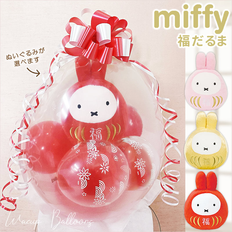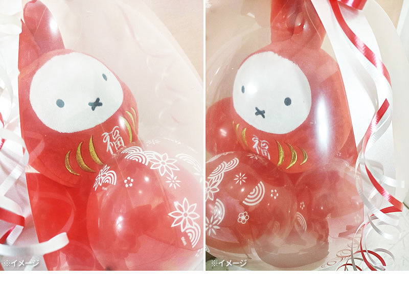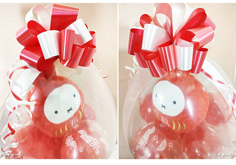 開店祝い 開業祝い 周年記念 ミッフィー うさぎ ぬいぐるみ ギフト ダルマ 縁起 お祝い プレゼント - ぬいぐるみバルーンラッピングギフト:選べるミッフィー福だるまS<和風赤バブル>