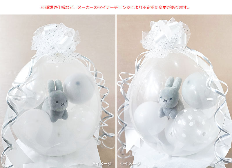 ブルーナ アニマル うさぎ クマ 犬 ミッフィー メラニー ダーン 1歳 2歳 3歳 誕生日 100日祝い ハーフバースデー 初節句 出産祝い 入園 卒園 結婚 - ぬいぐるみバルーンラッピングギフト:選べるミッフィービーンズ<チュール白グレードット>
