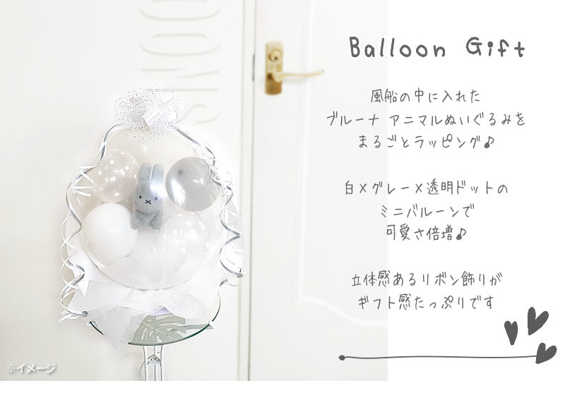 ブルーナのアニマルぬいぐるみを風船の中に入れたバルーンギフト
