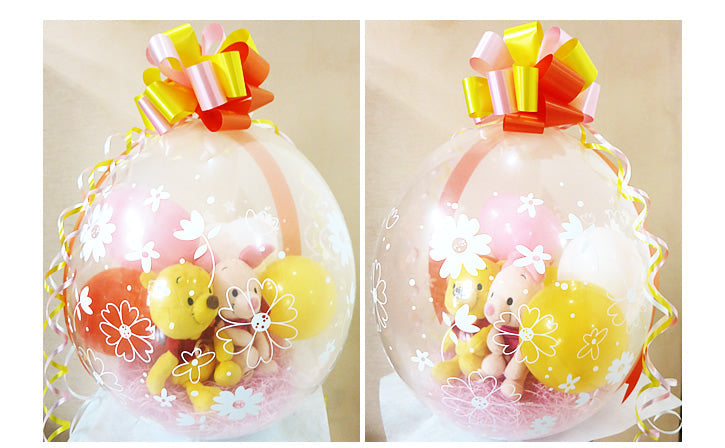 風船とくまのプーさんのマッチングがとてもハッピーで素敵な贈り物に…。
