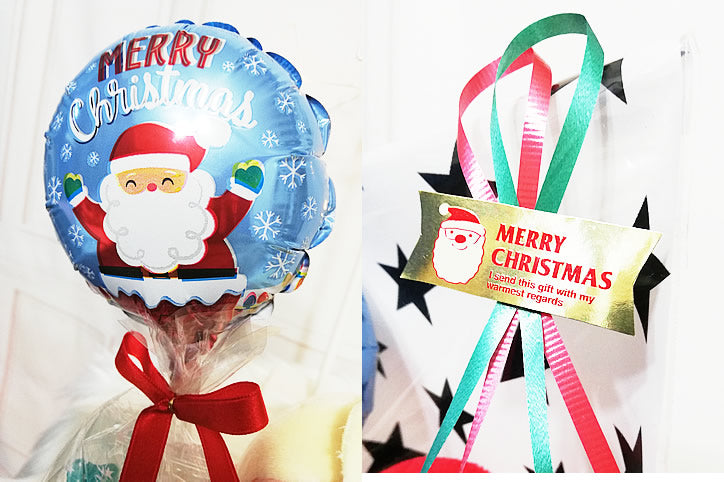 クリスマスサンタ帽子付き♪妖怪ウォッチ ジバニャン ぬいぐるみ&バルーン&キャンディ付ギフト - クリスマスサンタチムニー:ミニバルーン星型キャンディ付クリスマスサンタ帽子付妖怪ウォッチ ジバニャン
