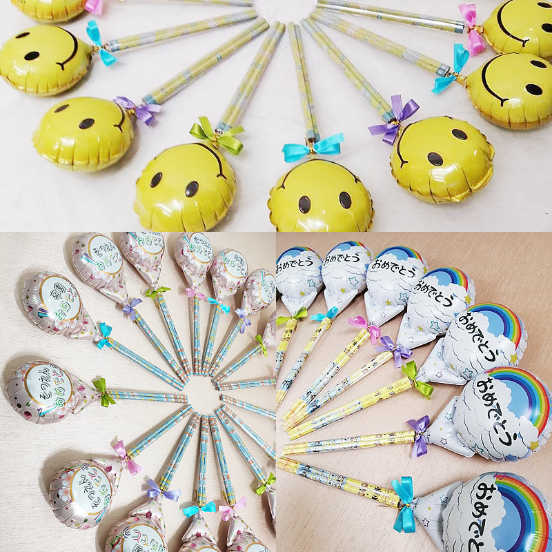 1個500円 送料別 1本から販売 お配り 配布 卒業式 卒園式 謝恩会 入学 子ども 記念 えんぴつ ギフト - 選べるミニバルーン鉛筆スティック1本<送料別>