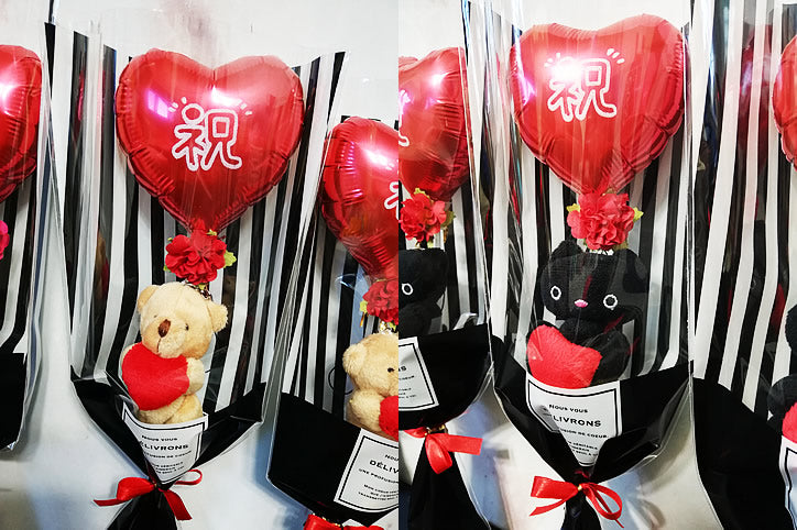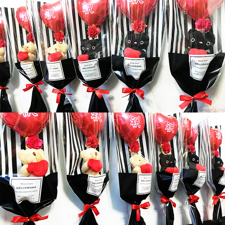 【1本の仕様】手のひらサイズのバルーン(浮きません)1個・ストラップ付ラブリーマスコット(くま/ねこ/うさぎなど)いずれか・OPPラッピング