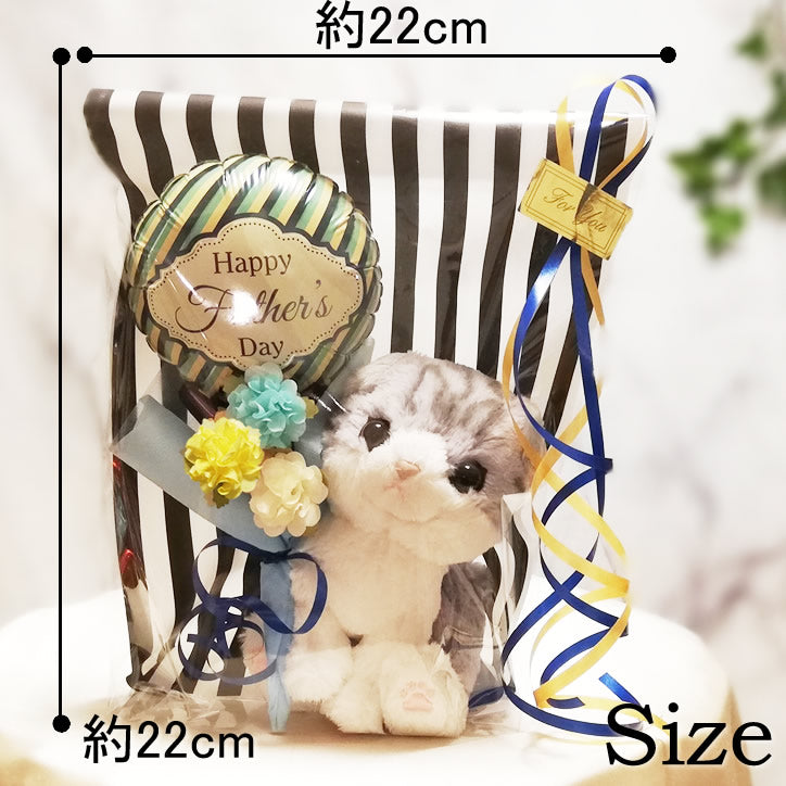 父の日 プレゼント 花束 猫のぬいぐるみ スコティシュフォールド/アメリカンショートヘア/ラグドール/ハチワレ/黒猫/ミケ/キジトラ/スナネコ - 父の日ミニバルーン花束ブーケ付ぬいぐるみキトン