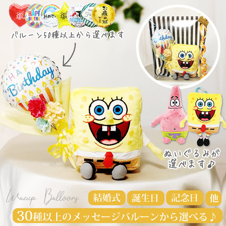選べるミニバルーン花束付スポンジボブぬいぐるみギフトセット<本州送料無料>