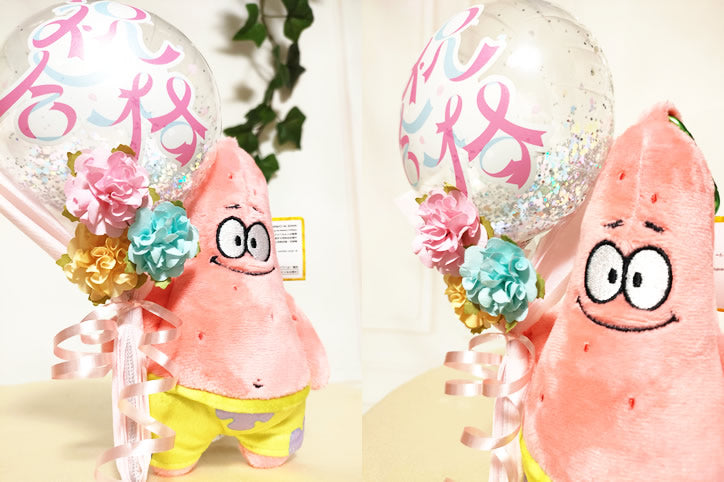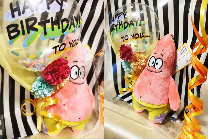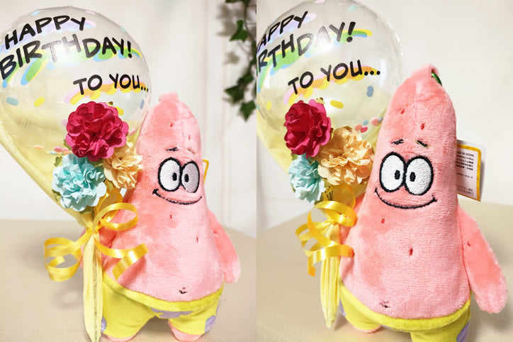 お好きなバルーンを選んでしっかりとお祝いの気持ちを表してくれます♪小さくて可愛いスポンジボブやパトリックのぬいぐるみがあなたのお祝いの気持ちを届けてくれます☆